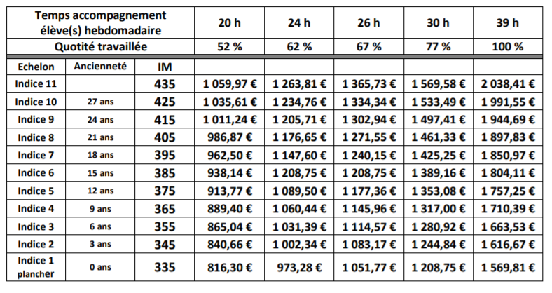 Une nouvelle grille de rémunération, avec avancement automatique, est entrée en vigueur à la rentrée 2021.